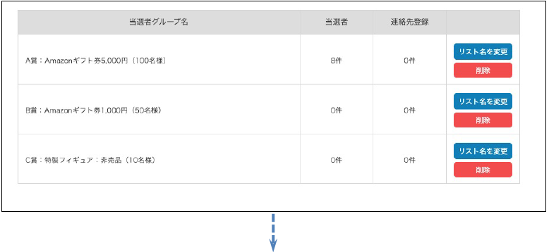 3. グループ名をクリックすると各当選者グループの管理画⾯に推移します。